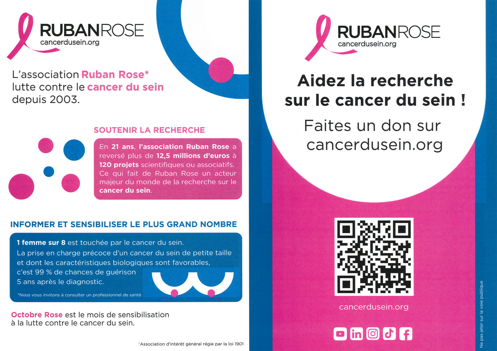 Ensemble, mobilisons-nous aux côtés de l'association Ruban Rose, qui œuvre depuis plus de 20 ans pour soutenir la recherche et informer le plus grand nombre.