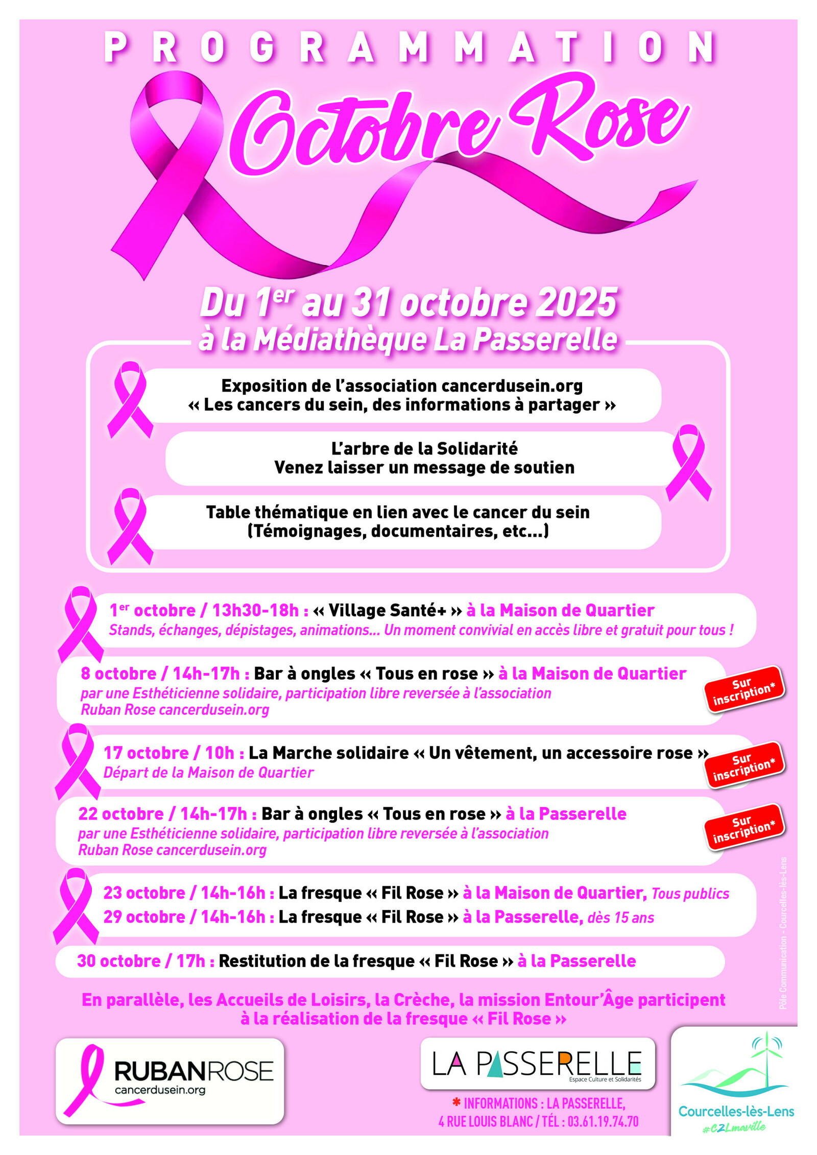 La mairie s'engage Comme chaque année, à soutenir Octobre Rose, le mois de sensibilisation à la lutte contre le cancer du sein.
