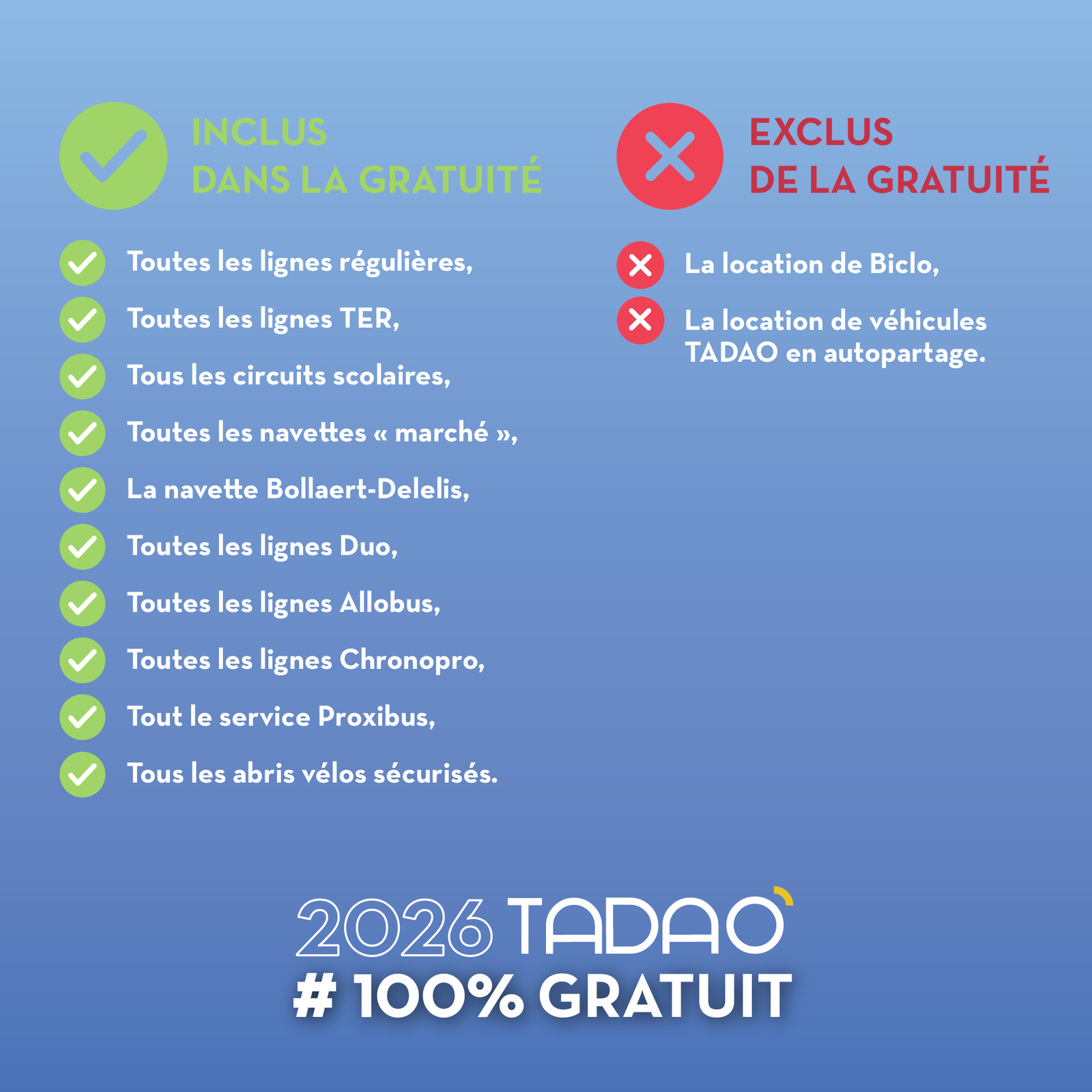 Le réseau TADAO devient entièrement gratuit.