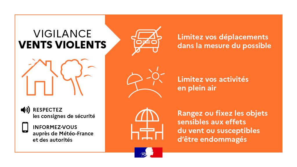 De fortes rafales de vent pourront atteindre 80 à 110km/h dans les terres, jusqu’à 130km/h sur le littoral.