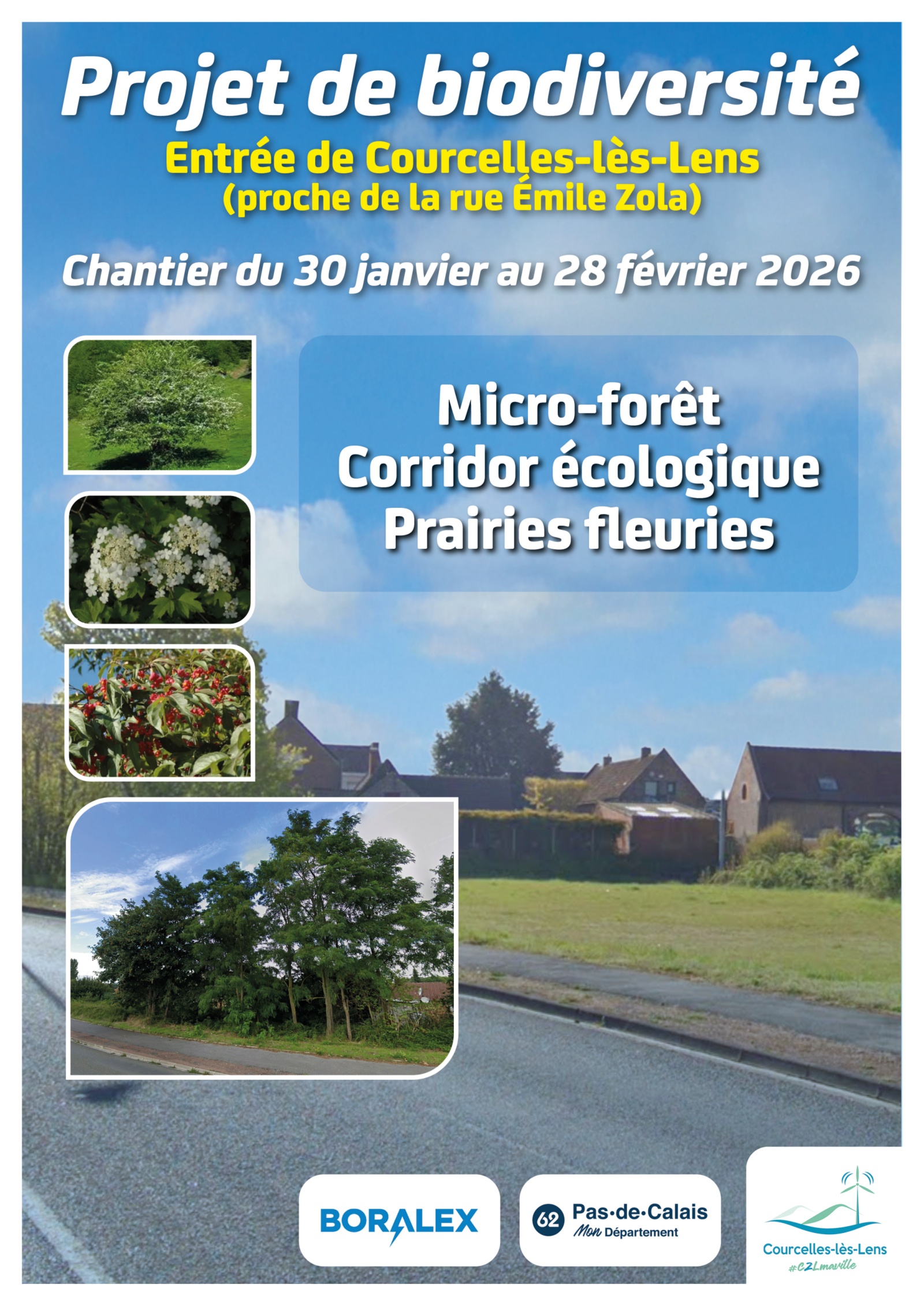 Un projet de biodiversité est en cours sur la zone verte à côté de la pharmacie, rue Émile Zola à Courcelles-lès-Lens.