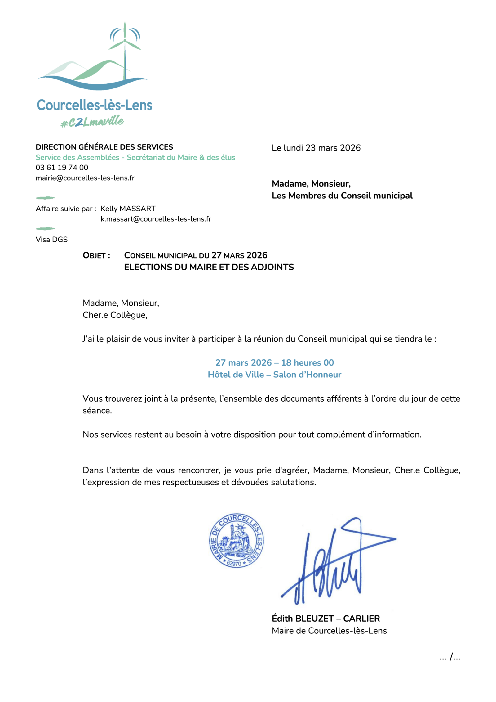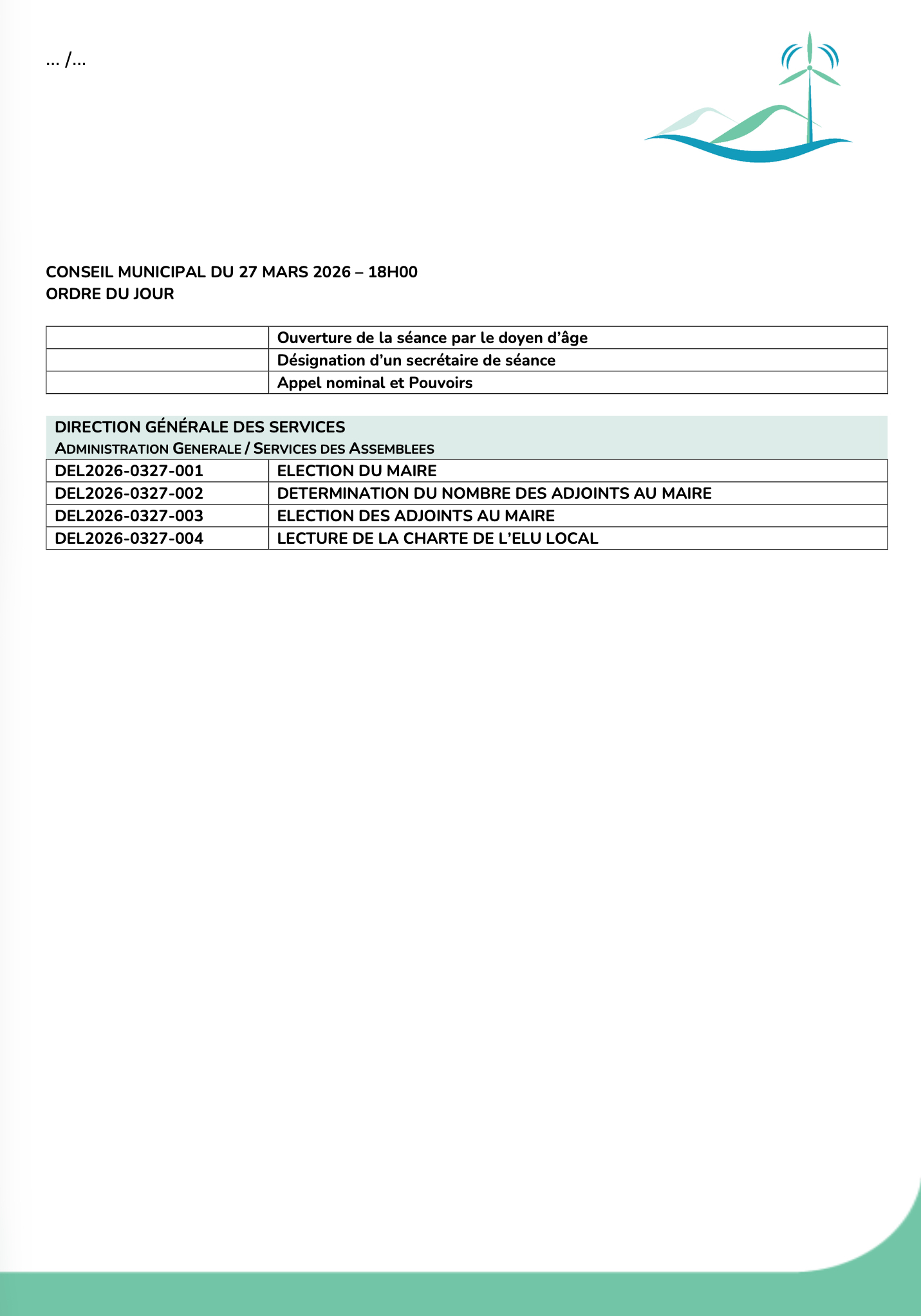 CONSEIL MUNICIPAL DU 27 MARS 2026 ELECTIONS DU MAIRE ET DES ADJOINTS